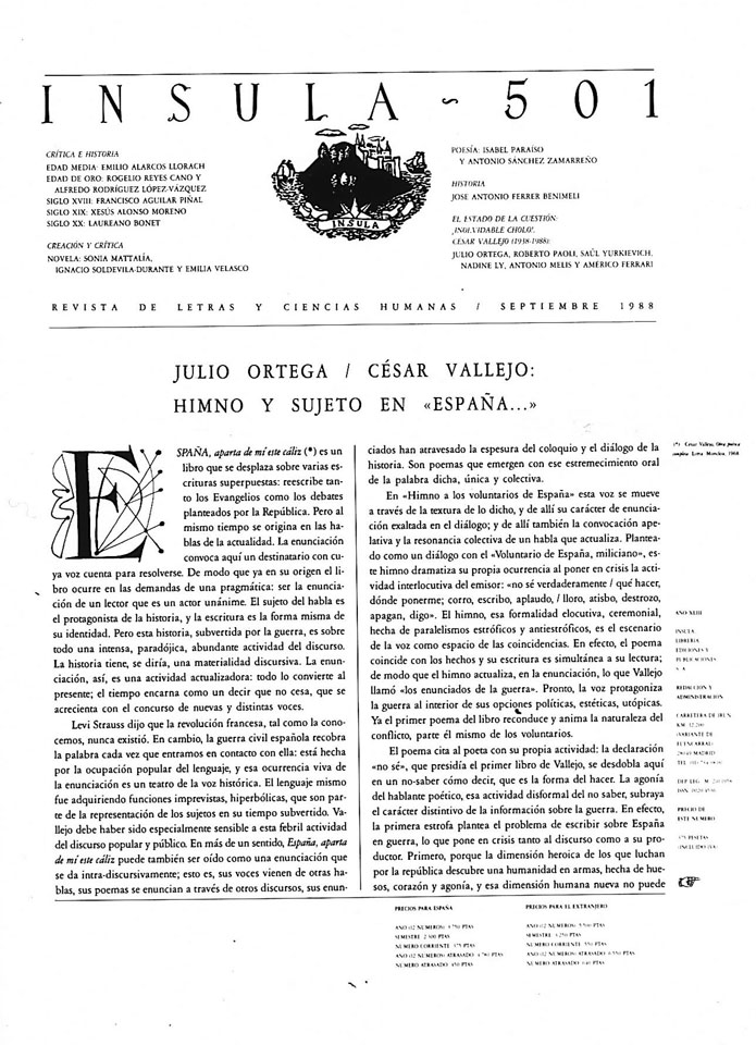 - Julio ORTEGA GALINDO / César Vallejo: Himno y sujeto en "España..."