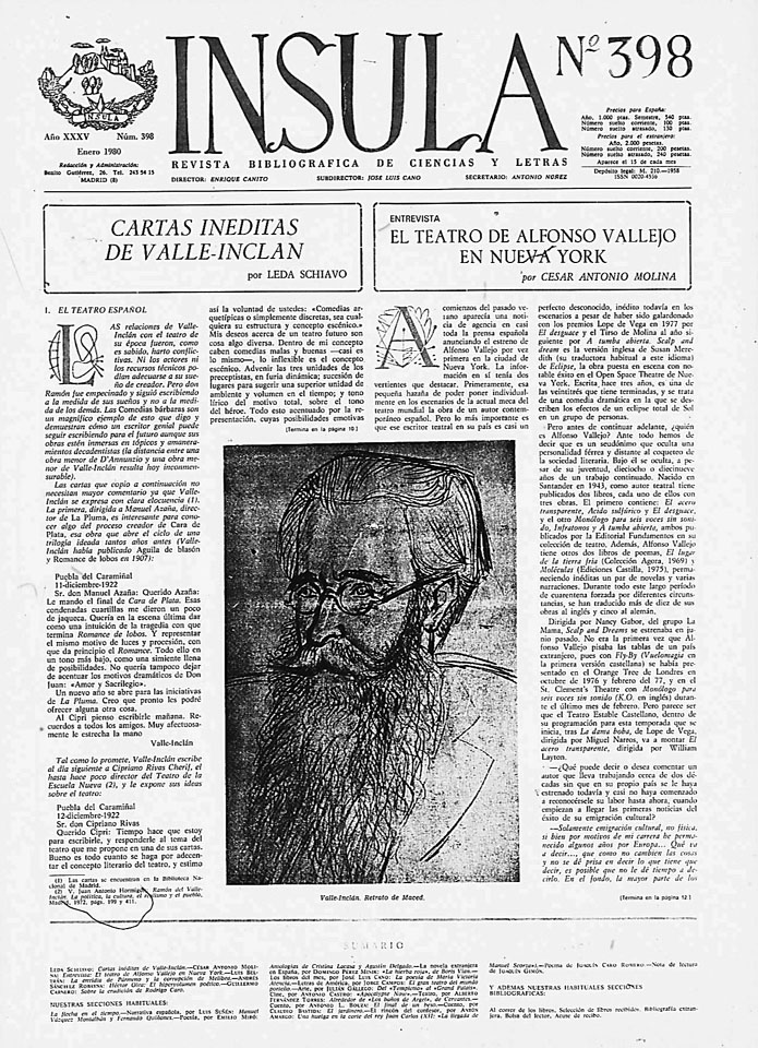 - Leda SCHIAVO / Cartas inéditas de Valle-Inclán I