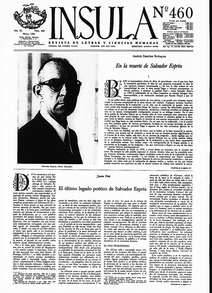 - Andrés SÁNCHEZ PASCUAL / En la muerte de Salvador Espriu