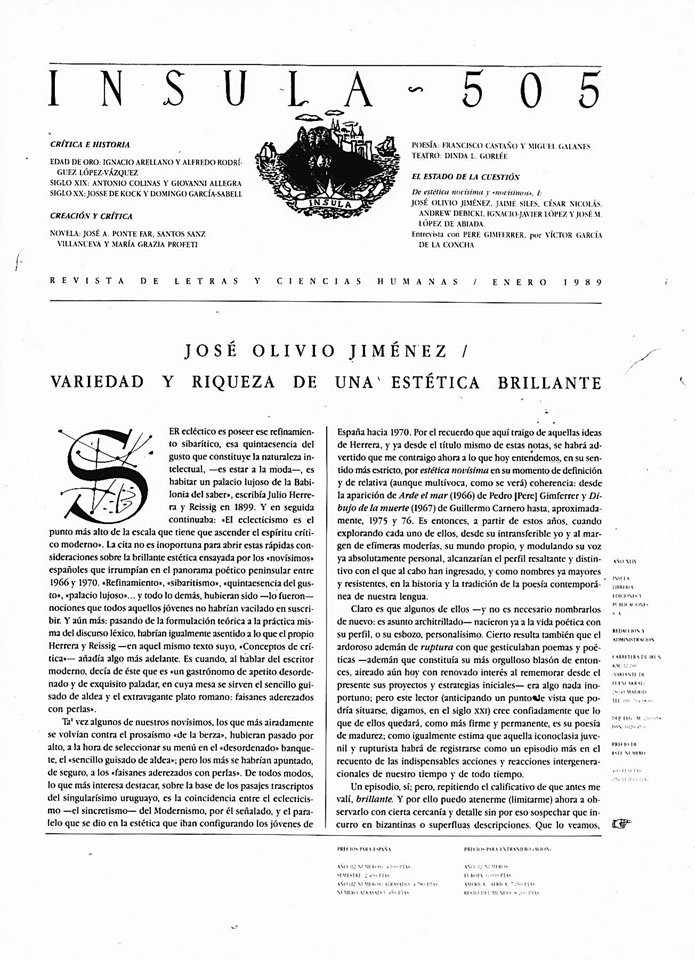 - José Olivio JIMÉNEZ / Variedad y riqueza de una estética brillante