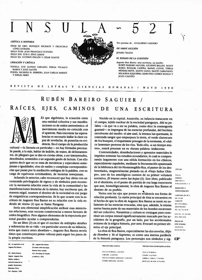- Rubén BAREIRO SAGUIER / Raíces, ejes, caminos de una escritura