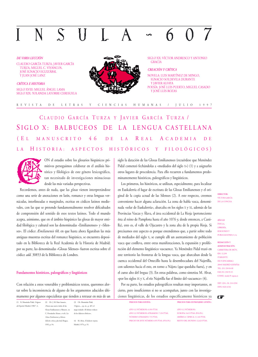 - Javier GARCÍA TURZA / Siglo X: Balbuceos de la lengua castellana. (El manuscrito 46 de la Real Academia de la Historia: as