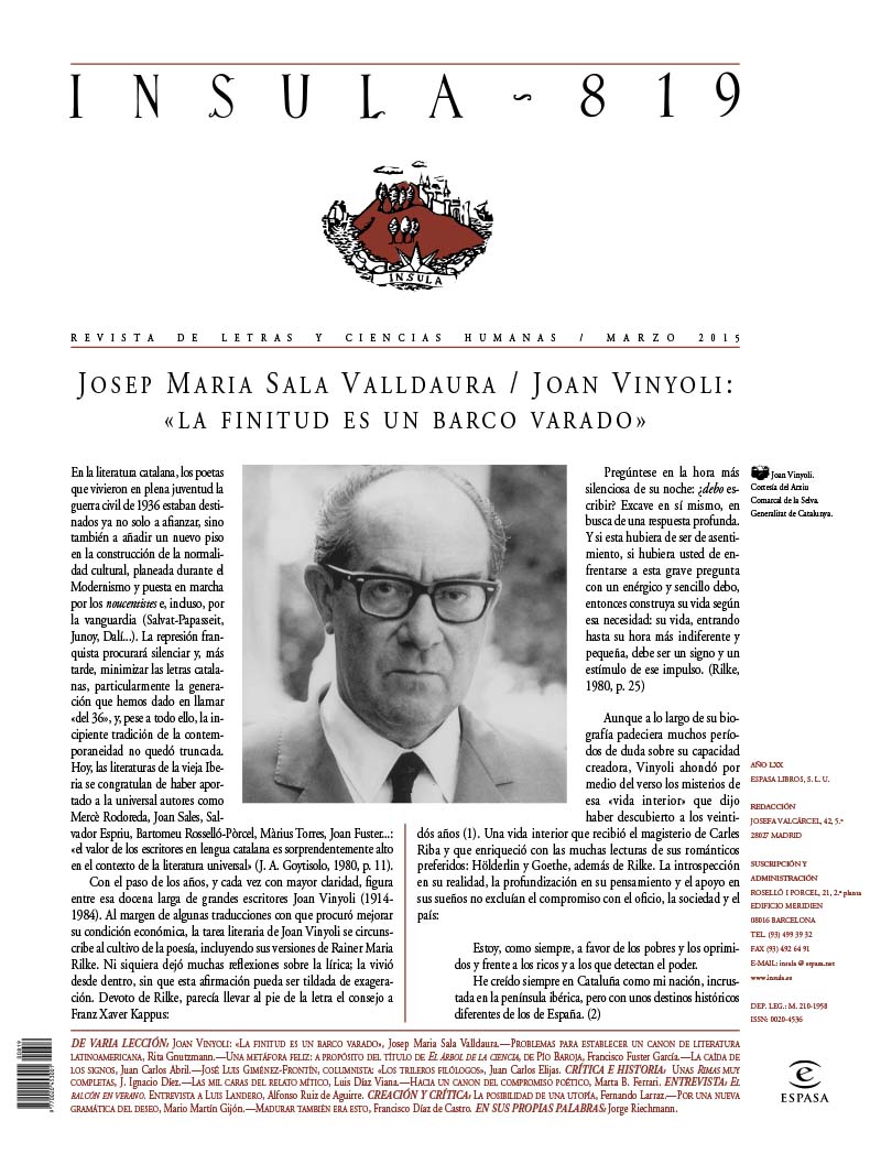 - Josep María SALA VALLDAURA / Joan Vinyoli: "La finitud es un barco varado"